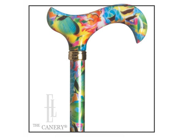 Floral Print Adjustable Derby Handle Aluminum Cane in Various Styles